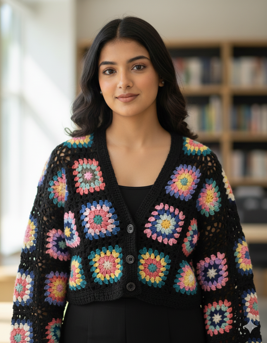 🌸 Multicolor Crochet Cardigan – Korean Inspired Style